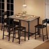 - Dining Table Set for 4 with Metal Corner Guards:This dining table set includes a counter height table with 4 upholstered bar stools, perfect for sharing a meal or a drink with family and friends. This dining table set for 4 features a sturdy metal corner guards to effectively withstand daily bumps, ensuring long-lasting durability and a like-new look. The clean lines and elegant wood grain finish add a touch of industrial style that complements any home decor