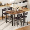 - Dining Table Set for 4 with Metal Corner Guards:This dining table set includes a counter height table with 4 upholstered bar stools, perfect for sharing a meal or a drink with family and friends. This dining table set for 4 features a sturdy metal corner guards to effectively withstand daily bumps, ensuring long-lasting durability and a like-new look. The clean lines and elegant wood grain finish add a touch of industrial style that complements any home decor