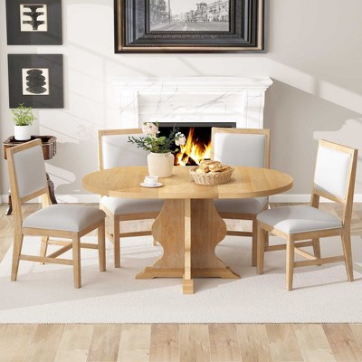 Dining Table Set for 6, Upholstered Dining Chairs with Rattan Backs and Oval Table in Natural Wood-Tone Finish, for Kitchen or Dining Room-Panipeachy