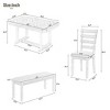 - 【Selected Materials】 The tabletop of this dining table set adopts MDF board and solid wood veneer, and the legs of the table is made of rubber wood. The frame of four chairs and the bench is manufactured of rubber wood as well to ensure adequate load-bearing capacity. In addition, the 65mm cushion seats of four chairs and the bench can offer comfort using experience.