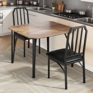This compact bistro set features two chairs with thick PU-padded seats and ergonomic high backs (300 lb capacity each) that tuck completely under a 29.1"L x 29.1"W x 30"H table, combining a durable high-density MDF top with rust-resistant metal frames, beveled-edge safety design for easy stain-resistant cleaning, and numbered parts for tool-free 30-minute assembly¡ªideal for small kitchens, apartments, or breakfast nooks.