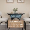 - Practical Storage: This dining table set includes a rectangular table with four chairs and a convenient storage shelf underneath. The shelf keeps dishes and utensils organized, ensuring a clutter-free tabletop and enhancing mealtime efficiency