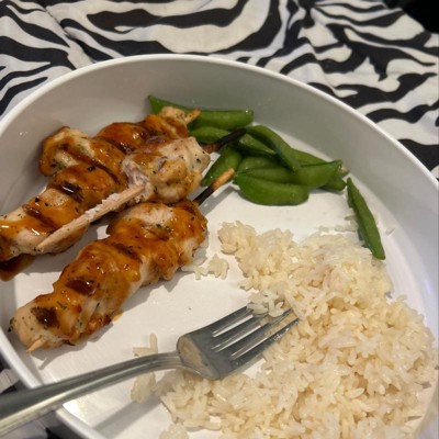 When you have Dinner in Minutes Chicken Skewers and Rice with Korean BBQ Sauce on hand, it's easy to pull together in a flash. These grilled chicken skewers are tender and tasty, and they come with rice for a complete entree. The skewers feature Korean barbecue sauce made with sesame oil, rice vinegar, sesame seeds and soy sauce that adds mild heat and takes the flavor up a notch. Ready in just 15 minutes, they're great for a busy weeknight dinner option.