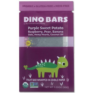 The Dino Bars Sweet Potato Raspberry Bar is an organic, gluten-free, and non-GMO snack specially crafted for kids aged 1 year and up. Each bar is wrapped in edible paper, keeping little hands clean and making it perfect for on-the-go snacking.