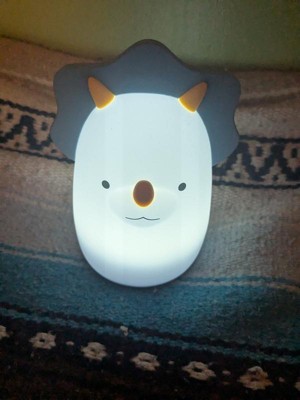 My daughter loves this soft silicone dino nightlight. It is fun for her to smack the dinosaur to make it brighter or more dim. My only mild complaint is that I wish she could turn it off by hitting it as well, you can only turn it off and on with the switch. Otherwise it is a cute, friendly, soft lamp perfect for kids of all ages.
