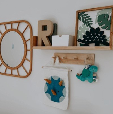 Decorate your kid's room with this Dinosaur Fiber Wall Art from cloud island™. The vertical wall decor features a woven dinosaur face with 3D horns on the front for a fun style, along with tassels detailing at the top for charming texture and flair. It features a string attached to the wooden dowel at the top, giving you a compelling fixture that's easy to hang on any wall.