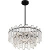 Staggering panels of clear crystal glass add high drama to Dion. Finished in matte black, this luxurious pendant light sparkles from every angle. Dion's simple drum silhouette highlights modern glam style, making it the perfect addition in any home office, kitchen, entryway, bedroom, or living room.