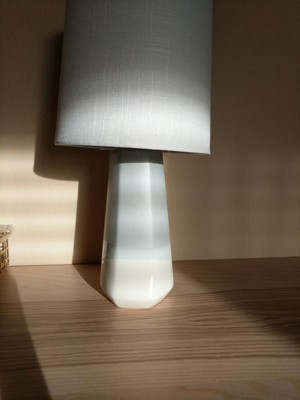 Add an element of class to any table with this Dipped Ceramic Small Lamp Base Blue/White from Threshold™. This two-toned ceramic lamp boasts a handmade look. Featuring a muted lamp base that will add cool tones to your room while the light will emit a warm and welcoming glow. Its neutral shade will coordinate beautifully with a wide variety of lamp shades.