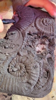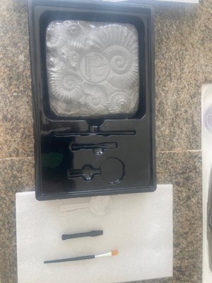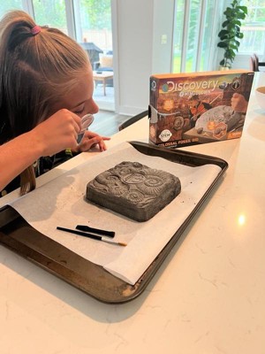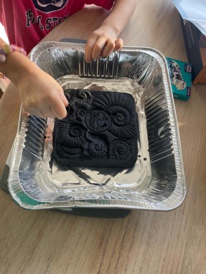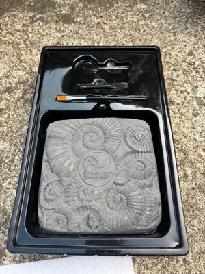 [This review was collected as part of a promotion.] We were excited to get this kit free to review from Influenster. Unfortunately this turned out to be a very messy activity. The instructions advised to wet the rock before digging for the “fossils.” This made the rock soft but also turned it into almost a charcoal like powder that stained my table, chairs and hands. The rock got everywhere and was tough to clean up. The “fossils” were a let down. They were very small and only 2 of the 15 looked like anything other than a rock. Wouldn’t buy this again.
