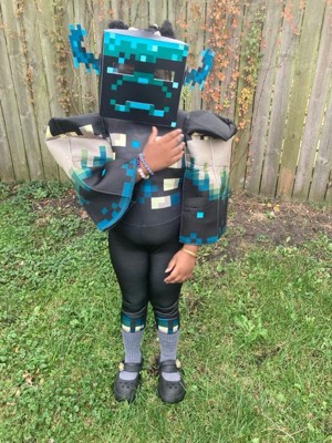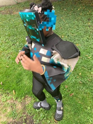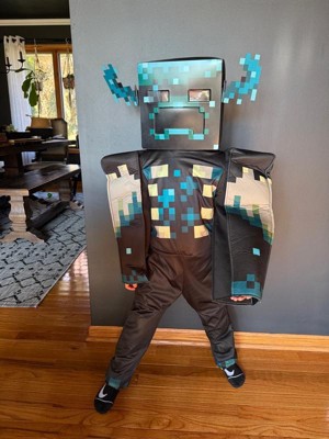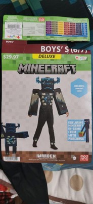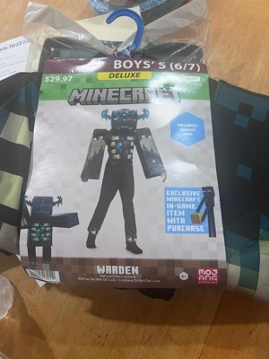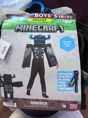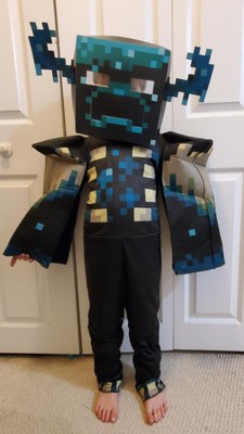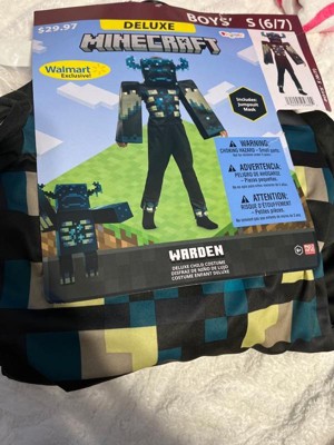 [This review was collected as part of a promotion.] This Minecraft warden deluxe is a cute costume. My kiddo loved it. He was excited to wear it all over when it came in. Costume is pretty easy to put on and kiddo didn't complain about it being uncomfortable. Colors on the costume are good and haven't faded with washings.