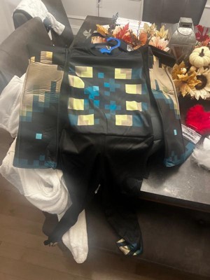 [This review was collected as part of a promotion.] 𝐃𝐢𝐬𝐠𝐮𝐢𝐬𝐞 𝐁𝐨𝐲𝐬 𝐌𝐢𝐧𝐞𝐜𝐫𝐚𝐟𝐭 𝐖𝐚𝐫𝐝𝐞𝐧 𝐂𝐨𝐬𝐭𝐮𝐦𝐞, 𝐎𝐟𝐟𝐢𝐜𝐢𝐚𝐥 𝐃𝐞𝐥𝐮𝐱𝐞 𝐌𝐢𝐧𝐞𝐜𝐫𝐚𝐟𝐭 𝐂𝐨𝐬𝐭𝐮𝐦𝐞 My son loves Minecraft so much, when he saw this costume he couldn't take his eyes off it. I got a size S/P 4-6x, which fits perfectly on him, for reference he is 6 years old and kind of skinny. The material is kind of thin, only a little thick on both shoulder areas, which is great to wear inside the school. The weather is the warmest Halloween that I have ever seen in New York (2024), this costume is perfect. It came in with a one piece jumpsuit, close in the back with a zip. While the school requires the costume to be easy for them to use the toilet alone, I changed the jumpsuit into two pieces, it is still stunning and my son has a lot of compliments in the school and on the street. Some bigger kids even scream that they see a walking Minecraft. My son loves it so much and asked me to save it for next year and he still wants to wear it. Highly recommend it to those who are Minecraft fans.