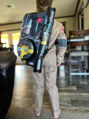 [This review was collected as part of a promotion.] My son was sooo excited to receive this Ghostbuster costume! It's so cute and was a perfect costume. It's a one piece jumpsuit just like in the movies but it velcros in the back. The bit was a tiny bit big around his shoulders so it does give room for bigger kids. The proton pack I was surprised to see was blow up. But it made it fun. The only reason I'm taking a point away is because of the proton pack. The straps were so far apart that my son couldn't keep the straps up and they kept falling off.. which meant mom had to carry it by the end of trick or treating. No big deal but it takes away from the costume. Also they had velcro adjustments on the straps, but it didn't allow for it to be tight enough. I did get his correct sizing too. Overall, super awesome costume and im thrilled I was able to have my son test this out for me to review.