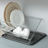 Unfold dish drainer to full open position Place drainboard underneath the rack Load dishes, cups, or utensils for air-drying Fold flat after use for compact storage