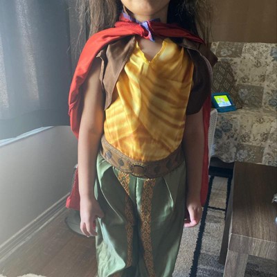 [This review was collected as part of a promotion.] My niece loves playing dress up, I think she has every Disney princess dress there is. I thought it would be cool to give her this Raya Warrior outfit since she loved the movie. It fits her perfect. It's a one piece which is easy to put on, and the cape has Velcro. She can easily put it on herself. It is very well made and durable. She loves playing in it, fighting the dragon. She said it makes her so brave. I think Raya is a great role model, and teaches her she can be brave and strong. I think it's perfect!