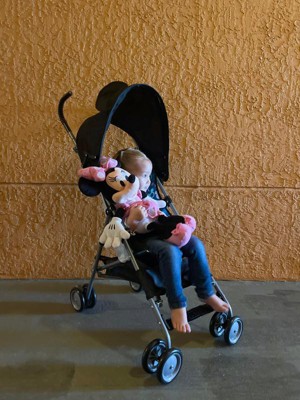 We got the Disney Baby Character umbrella stroller as part of the Stellar Product Testing Panel, and were a little intrigued. Until now, our family with two young kids (2 and 4) has used more bulky/sturdy strollers, so this was a new venture for us. This stroller had our kids excited about the ears on the umbrella/sun shade. It is easy to use. We had minor learning curves for the locking mechanisms, but it is easy to use and we can now find that feature quickly and release the latch to open the stroller quickly. We can toss it in the back of our cars (compact SUV and hatchback sedan) and fit it in among the many other things we always seem to be hauling around. Seems durable and easy to clean-- we have yet to have a major spill/mess, so time will tell on that front with young ones. I do miss the hefty storage of our bigger strollers, but it all comes at a tradeoff as this stroller is definitely lighter and more nimble. Easy to steer and maneuver. Overall, this is so nice to have a lightweight stroller for our fam so a kiddo can walk when they want, and adults have a lightweight option to push around until the kids need a break.