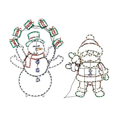 Product Details: Lights up for an eye-catching display. Weather-resistant design withstands the elements. Tethers and yard stakes included for easy setup. 5.25 ft. power cord plugs into a standard electrical outlet for convenient power access. Inflated dimensions: 4.9 ft. H x 5 ft. W. X 5 ft. L