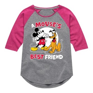 Mickey & Friends - A Mouses Best Friend - Toddler And Youth Girls Raglan Graphic T-Shirt - Add a touch of magic to your wardrobe with this graphic apparel featuring iconic Disney designs. Showcasing beloved characters and classic imagery, each piece combines nostalgic charm with modern style—perfect for Disney fans of all ages. Whether you're headed to the parks or just adding whimsy to your everyday look, these graphics bring the magic to life.