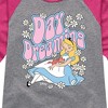 Disney - Alice In Wonderland - Day Dreaming - Toddler & Youth Girls Raglan Graphic T-Shirt - Add a touch of magic to your wardrobe with this graphic apparel featuring iconic Disney designs. Showcasing beloved characters and classic imagery, each piece combines nostalgic charm with modern style—perfect for Disney fans of all ages. Whether you're headed to the parks or just adding whimsy to your everyday look, these graphics bring the magic to life.