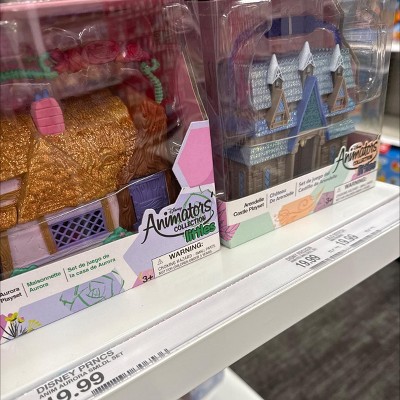 They'll enter a fairytale world when they open the door to this Disney Animators' Littles Aurora Cottage Play Set. The young princess is included with Prince Phillip and other favorite characters from Sleeping Beauty in this portable set that features a water wheel that spins and a dress that turns from pink to blue. Genuine, Original, Authentic Disney Store Product.