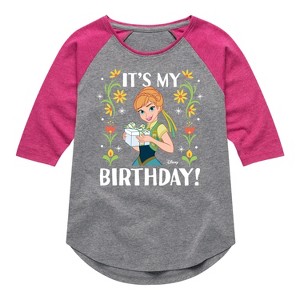 Disney Frozen - Anna It's My Birthday - Toddler & Youth Girls Raglan Graphic T-Shirt - Add a touch of magic to your wardrobe with this graphic apparel featuring iconic Disney designs. Showcasing beloved characters and classic imagery, each piece combines nostalgic charm with modern style—perfect for Disney fans of all ages. Whether you're headed to the parks or just adding whimsy to your everyday look, these graphics bring the magic to life.