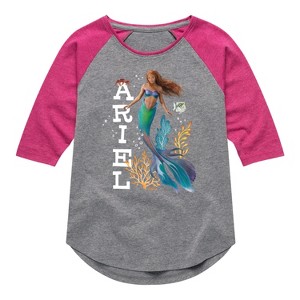 Girls' - Disney - Ariel Shirt Tail Raglan Graphic T-shirt - 1 of 3