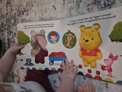 Winnie the Pooh's black nose color is partially rubbed off, not the greatest quality in that respect for a new book. Also, it is hard to make him squeak for me - so impossible for my baby who actually cried when he couldn't make Winnie squeak like I did. Otherwise the book is cute... but I can't recommend this one. My baby and I have liked other similar books by disney, just get one without the squeezable Pooh