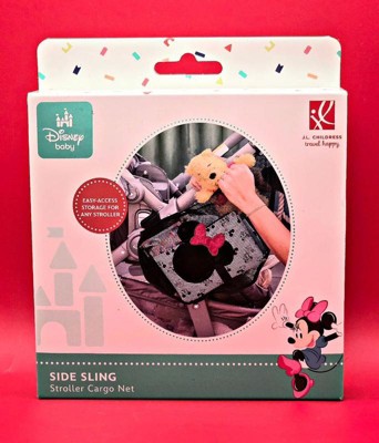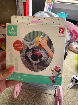 [This review was collected as part of a promotion.] How adorable is this Disney side sling stroller cargo net!? It has Minnie mouse silhouette face on the side perfect for any little ones first magical trip to Disney World or for anyone who likes Disney characters in general. Although it stores a lot for my stroller and very durable, my five year-old likes to add it to her own baby doll stroller to put her baby dolls bottle, Binky, and diaper in it as well so it has dual versatility.