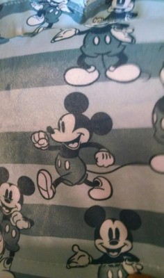 My 18 month old is always looking for something to snuggle up in. This blanket is so, so soft and the pattern is adorable. I also love that the print isn't obnoxious like other Disney-themed items where it really stands out in your nursery. As you can see, my child took to this blanket immediately- a must have for Mickey lovers!