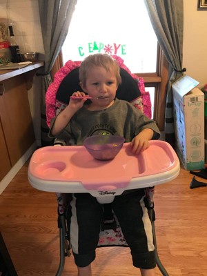 The Disney Baby Minnie Simple Fold Plus High Chair is a great high chair overall. My favorite feature is the compact size. The high chair folds with ease and, when folded, it is small enough to store out of the way. Even though it is compact, the high chair does not feel that way when being used—it felt very sturdy and like other full-size high chairs. The high chair is super easy to clean; the removable tray and wipeable seat pad made clean up from a very messy toddler super easy and fast. I love the fact that my toddler can grow with this as the tray can be adjusted to three different positions. The Minnie Mouse design is adorable—my toddler loved seeing one of their favorite characters on the chair, it made mealtime a bit more fun! This is a great high chair, one that I would definitely recommend. Thanks to the Stellar Product Testing Panel for providing me with this high chair.