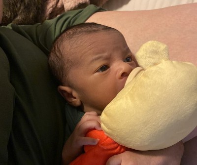 Our new arrival!! Bundle of joy, loves holding on to Winn Pooh
