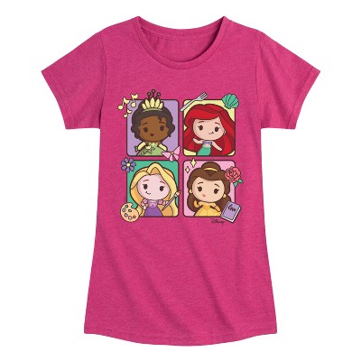 Girls' Disney Belle Tiana Cinderella Fitted Short Sleeve Graphic T-Shirt - Heather Fuchsia - X-Large