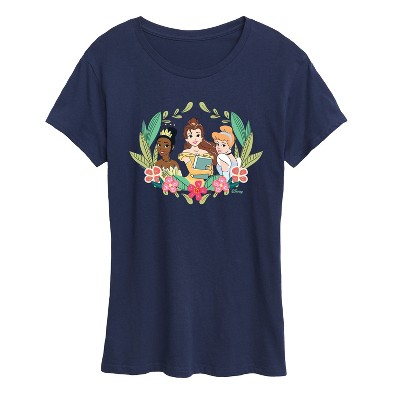 Women's - Disney - Belle Tiana Cinderella Lightweight French Terry Wide Neck Long Sleeve Graphic Shirt - 1 of 4
