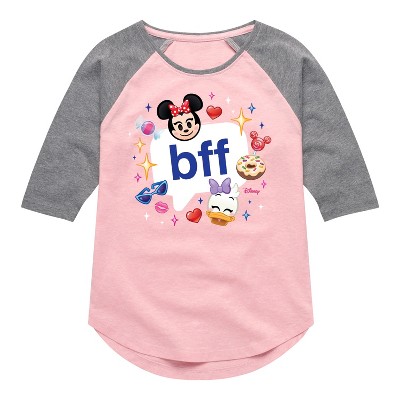 Disney Emoji - Bff Mickey Pluto - Toddler And Youth Girls Raglan Graphic T-Shirt - Add a touch of magic to your wardrobe with this graphic apparel featuring iconic Disney designs. Showcasing beloved characters and classic imagery, each piece combines nostalgic charm with modern style—perfect for Disney fans of all ages. Whether you're headed to the parks or just adding whimsy to your everyday look, these graphics bring the magic to life.