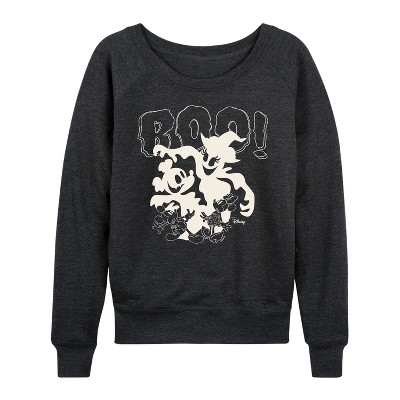 Women's Disney Boo Cute Little Monster Lightweight French Terry Wide Neck Long Sleeve Graphic Shirt - Heather Charcoal - X-Large
