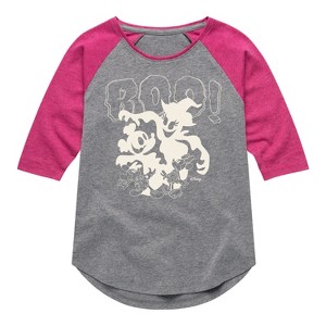 Mickey & Friends - Boo - Toddler And Youth Girls Raglan Graphic T-Shirt - Add a touch of magic to your wardrobe with this graphic apparel featuring iconic Disney designs. Showcasing beloved characters and classic imagery, each piece combines nostalgic charm with modern style—perfect for Disney fans of all ages. Whether you're headed to the parks or just adding whimsy to your everyday look, these graphics bring the magic to life.