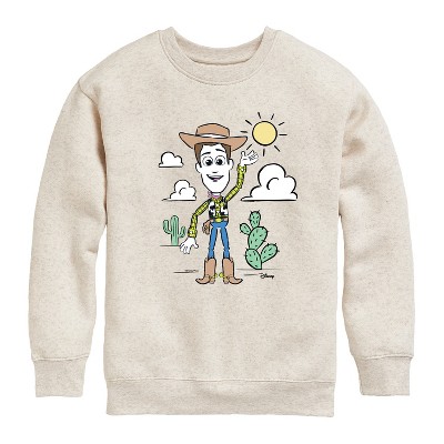 Disney - Buzz And Woody - Toddler & Youth Crewneck Fleece Sweatshirt - Round up the gang with Toy Story graphic apparel featuring Woody, Buzz Lightyear, Jessie, Rex, and the whole crew in colorful, heartwarming designs.
