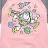 Girls' - Disney - Buzz Space Collage Shirt Tail Raglan Graphic T-shirt - 1 of 3