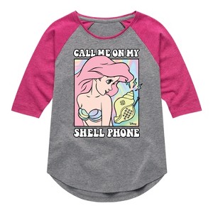 Disney Princess - Call Me On My Shell Phone - Toddler & Youth Girls Raglan Graphic T-Shirt - Add a touch of magic to your wardrobe with this graphic apparel featuring iconic Disney designs. Showcasing beloved characters and classic imagery, each piece combines nostalgic charm with modern style—perfect for Disney fans of all ages. Whether you're headed to the parks or just adding whimsy to your everyday look, these graphics bring the magic to life.