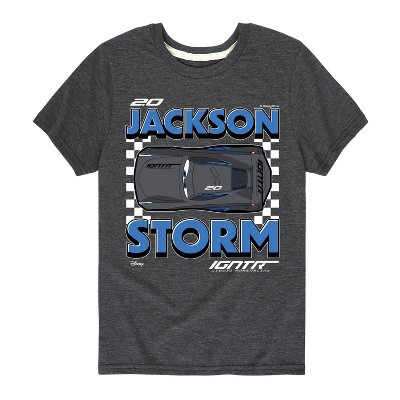- Get ready for every pit stop style. Contains a grey Cars short sleeve boy clothes T-Shirt with Lightning McQueen print speeding across the track.