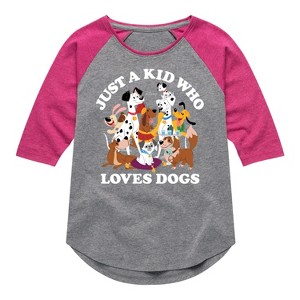 Disney Classics - Cats & Dogs - Just A Kid Who Loves Dogs - Toddler And Youth Girls Raglan Graphic T-Shirt - Add a touch of magic to your wardrobe with this graphic apparel featuring iconic Disney designs. Showcasing beloved characters and classic imagery, each piece combines nostalgic charm with modern style—perfect for Disney fans of all ages. Whether you're headed to the parks or just adding whimsy to your everyday look, these graphics bring the magic to life.