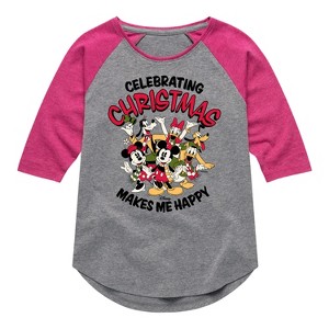 Girls' - Disney - Celebrating Christmas Shirt Tail Raglan Graphic T-shirt - 1 of 2
