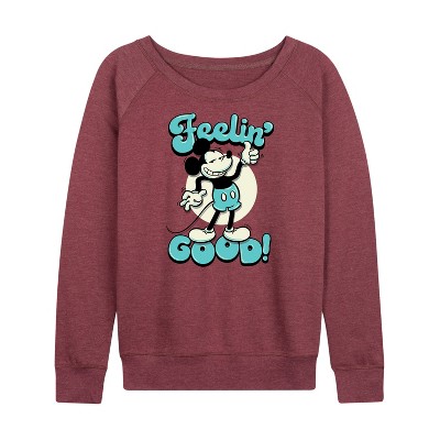 Women's Disney Cheetah Print Lightweight French Terry Wide Neck Long Sleeve Graphic Shirt - Heather Maroon - 1X