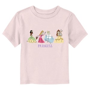 No need for your kids to pick a favorite princess anymore! They can celebrate all their beloved characters with the officially licensed Toddlers' Disney Cute Princess Graphic T-Shirt! This unique design features sketch-inspired designs of Tiana, Aurora, Cinderella, and Belle with the word: "Princess" written in purple lettering below them. Surprise your little ones with something cute today with this new apparel, an ideal pick for Disney fans of all ages!