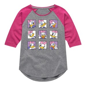 Girls' - Disney - Daisy Emotions Grid Shirt Tail Raglan Graphic T-shirt - 1 of 3