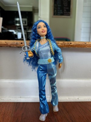 I love how she looks exactly like the movie, although her hair is very delicate it gets stuck to her jacket her shirt under her jacket is more a bathing suit then a shirt and when you try to but her sword on her hand the paint comes off onto her hand other than that I love this doll can't wait for Chloe from descendants 5 wicked wonderland💙💙💙