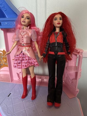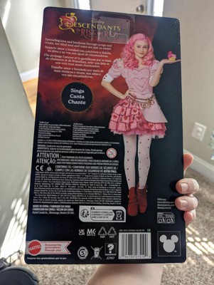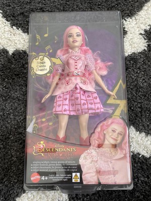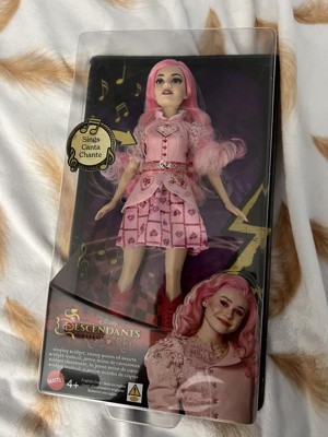 [This review was collected as part of a promotion.] I chose this doll for my daughter because she is very into Disney Descendants. She enjoyed playing with her as she does with her other "action figure" type dolls. This one is unique because when you press her stomach she sings a little song. Her clothes are cute but extremely hard to take off and put back on. They are VERY tight and this was frustrating for my daughter. The back closes with velcro and this should be simple to reattach but it was hard to get the 2 sides to meet even for me much less a small child. Her red boots are adorable and will fit other dolls of similar size. My daughter's favorite part is her pink hair. It's fun and makes her fun to play with. Overall a nice doll, average quality that is fun for my girl to play with.