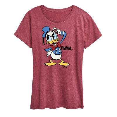 Disney - Donald Duck - HMMM... - Women's Short Sleeve Graphic T-Shirt - Add a touch of magic to your wardrobe with this graphic apparel featuring iconic Disney designs. Showcasing beloved characters and classic imagery, each piece combines nostalgic charm with modern style—perfect for Disney fans of all ages. Whether you're headed to the parks or just adding whimsy to your everyday look, these graphics bring the magic to life.