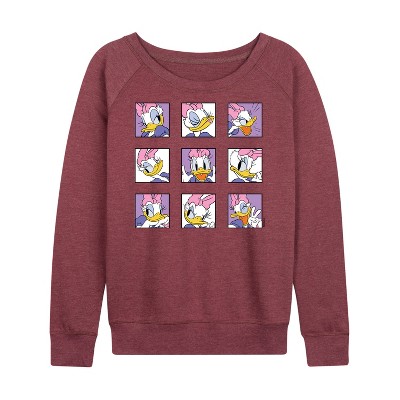 Women's Disney Donald Grid Lightweight French Terry Wide Neck Long Sleeve Graphic Shirt - Heather Maroon - 4X