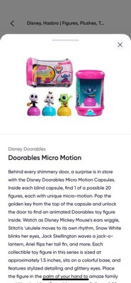 - Small Moves, Big Fun: Behind every door, an animated surprise is in store with the Disney Doorables Micro Motion Capsules.