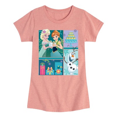 Girls' - Disney - Elsa, Olaf & Anna Birthday Celebration Shirt Tail Raglan Graphic T-shirt